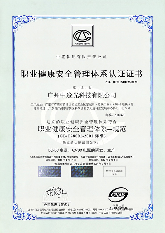 職業(yè)健康安全管理體系認(rèn)證證書(shū)